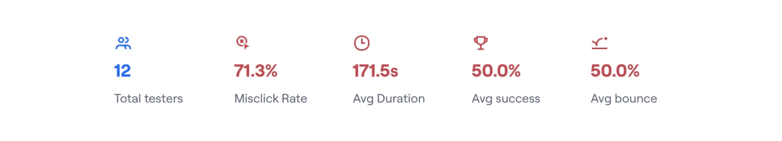 We conducted a preliminary usability test similar to the initial study and were encouraged to find that the first design iteration was noticeably easier for testers to understand. Completion rate and average task duration were used as the primary performance indicators. Building on these insights, we then executed a more extensive usability test comparing both the implemented design and the redesign. This allowed us to evaluate the recent changes while also directly comparing the two designs from the user perspective.